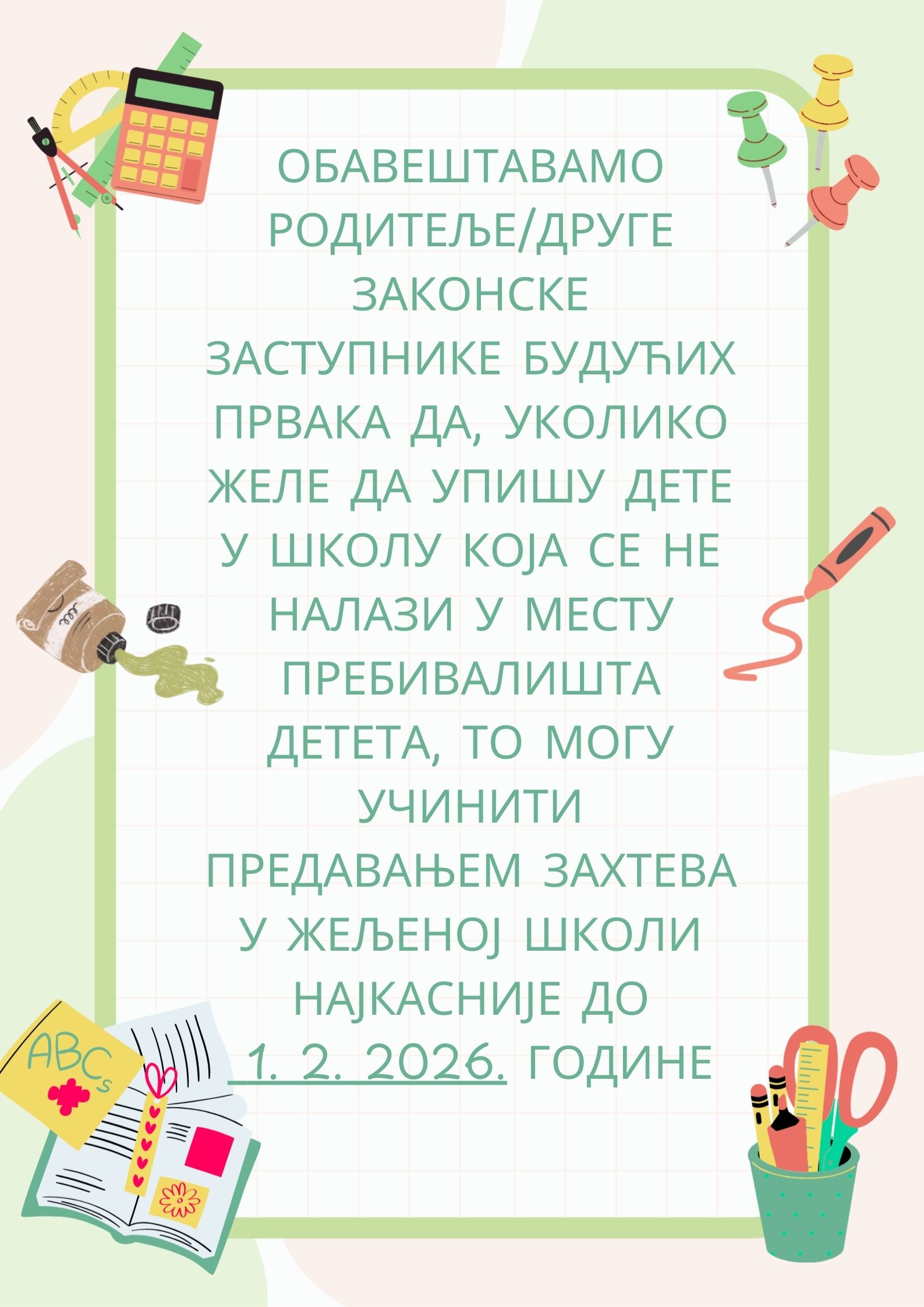 • ОБАВЕШТЕЊЕ ЗА ПРВАКЕ
